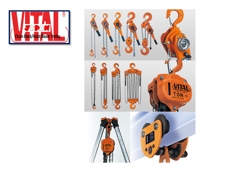 Vital is a Japanese brand which is globally recognised for their high quality products. Their range of chain blocks are suited for many applications in the mining, construction, industrial and automotive industry. They have proven to be an economical method to lift heavy loads with ease. The capacities vary from 0.5 ton to 20 ton and all chain blocks can be supplied with overload protection for added security of use. The NR-series lever blocks feature the “free-wheeling” braking system which enables fast and easy operation. There is a minimum load requirement of 10% of the Working Load Limit to ensure that the braking system remains operative and continues to support the load. These lever blocks are ideally suited for the shipbuilding, construction, mining and power transmission industries.
